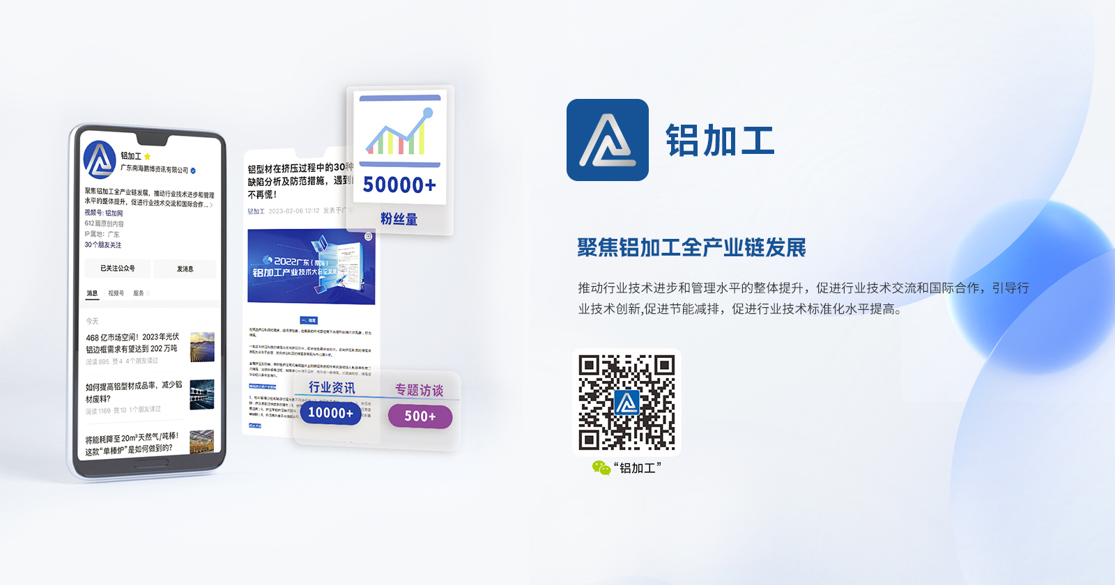 鋁加網(wǎng)(www.albiz.cn)是聞名鋁加工行業(yè)的垂直門戶網(wǎng)站,云聚鋁業(yè)新生態(tài),構(gòu)建鋁業(yè)新場景,以albiz.cn 網(wǎng)站為核心,以移動云端、鋁加工微信、鋁加網(wǎng)視頻號、《鋁型材??泛汀朵X世界》雜志為載體,成為了鋁加工行業(yè)資訊和精準(zhǔn)傳播的首選傳媒。鋁加網(wǎng),采集和發(fā)布全行業(yè)信息資訊,提供線上展覽、在線直播、短視頻、品牌策劃、品牌運(yùn)營、品牌傳播等全方位的專業(yè)服務(wù)。